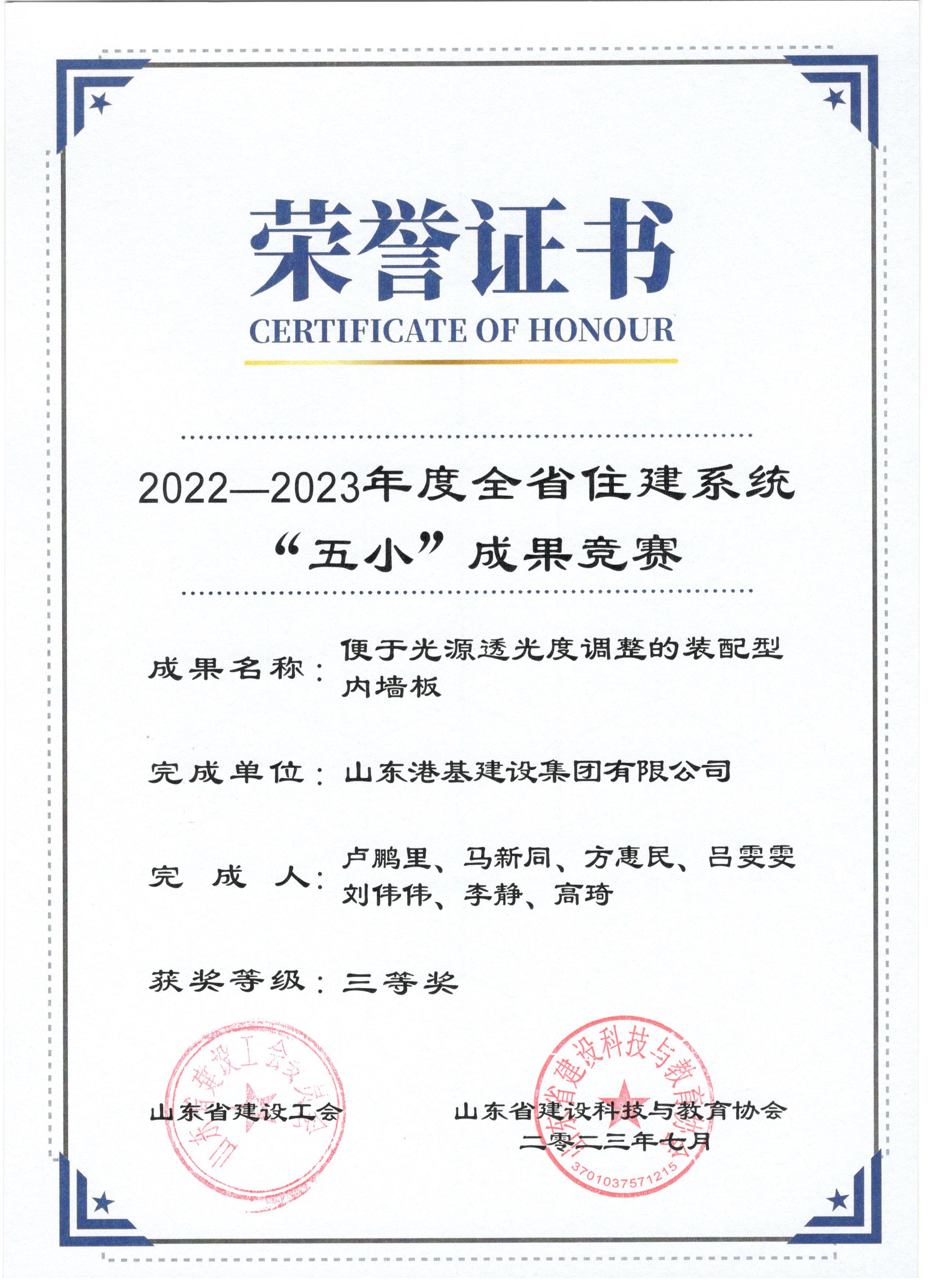 山東省住建系統(tǒng)“五小”成果競賽三等獎 |