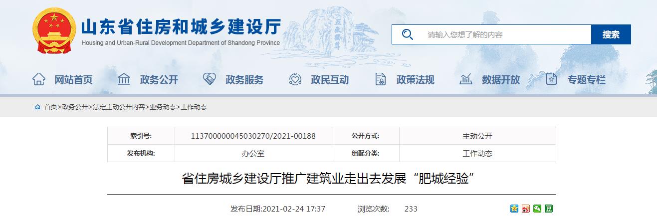 近日,省住房城鄉(xiāng)建設廳印發(fā)通知,在全省推廣肥城市建筑業(yè)走出去發(fā)展的好經驗、好做法。通知指出,泰安肥城市黨委、政府認真貫徹落實《山東省人民政府辦公廳關于進一步促進建筑業(yè)改革發(fā)展的十六條意見》和全省建筑業(yè)改革發(fā)展大會精神,泰安和肥城市兩級住建行業(yè)主管部門積極作為,特別是在推動建筑業(yè)出省、出境“走出去”發(fā)展方面,措施有力,服務到位,成效顯著。